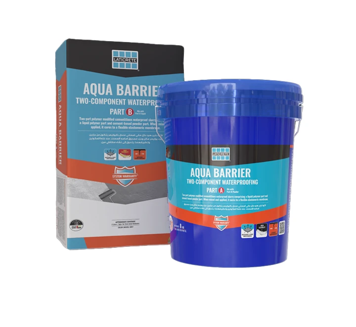 - AQUA BARRIER is a two-part polymer modified cementitious waterproof slurry comprising of a liquid polymer part and cement-based powder part.