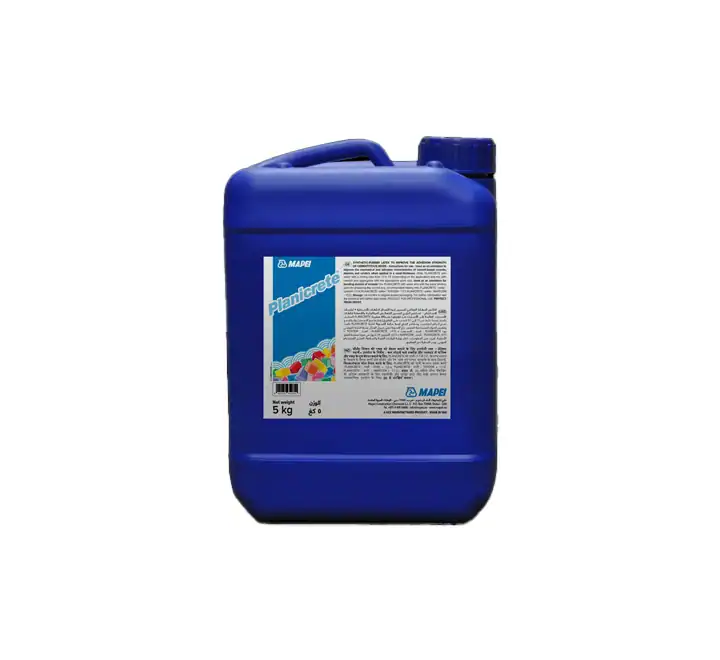 - Admixture to improve mechanical and adhesive strength of cementitious mixes for screeds, renders, small-thickness renders, etc. Additive for cement based adhesive slurries for anchoring bonded screeds, filling holes or repairing damaged sections of screeds, cementitious floors, etc. Additive for spatterdash to provide anchoring for renders. Do not use pure Planicrete as a primer or slurry, always mix it with Portland cement, or when required, with Mapecem, Mapecem Pronto, Topcem or Topcem Pronto.