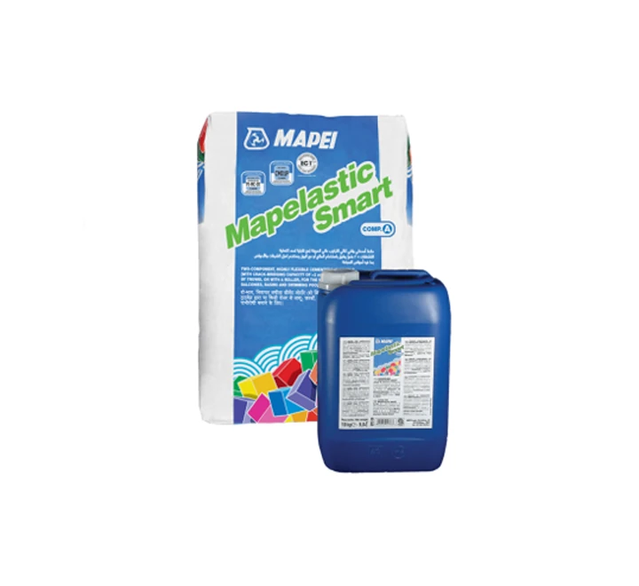 - MAPELASTIC SMART is a two-component, high-performance waterproofing system available in 30 kg bags. It is designed to provide effective protection against water infiltration in various applications. The system consists of two components, Part A and Part B, which are mixed together to activate the waterproofing properties.