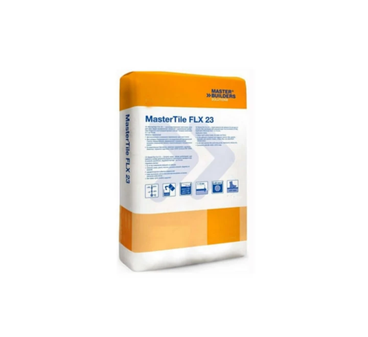 MasterTile FLX 23 is a polymer modified pre-bagged single component cementitious tile adhesive requiring only the addition of water and mixing to make it ready for use. MasterTile FLX 23 has been carefully formulated to attain optimum non-sag properties, adjustability and open time of the applied product. The use of specialist polymers ensures that adequate adhesion is guaranteed even in difficult conditions such as under water. Once applied and cured MasterTile FLX 23 is resistant to service temperatures ranging from -30°C to +80°C.