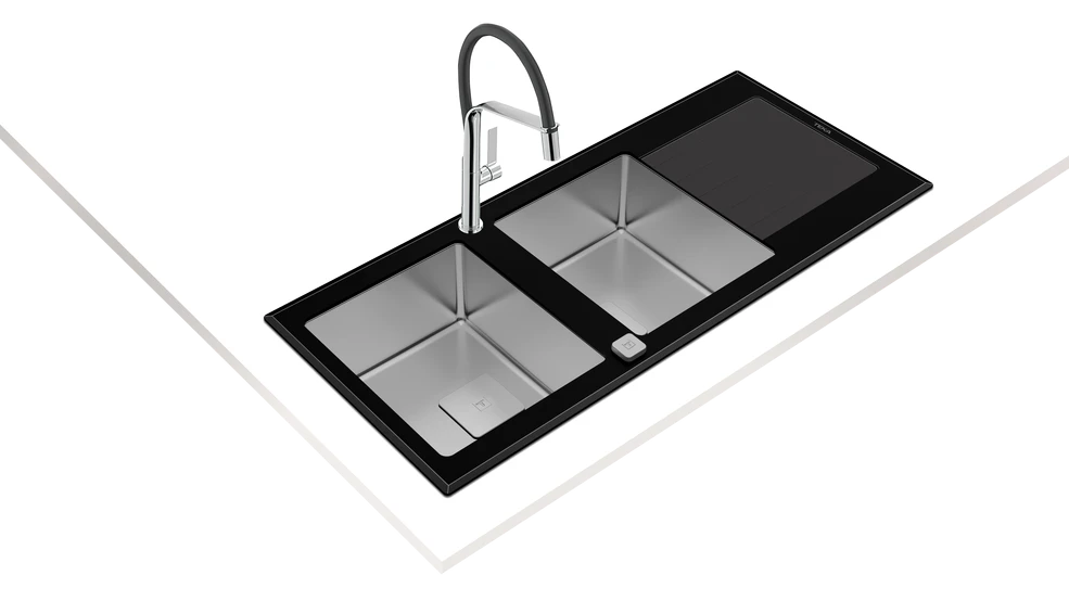 - PureLine glass and stainless steel sink