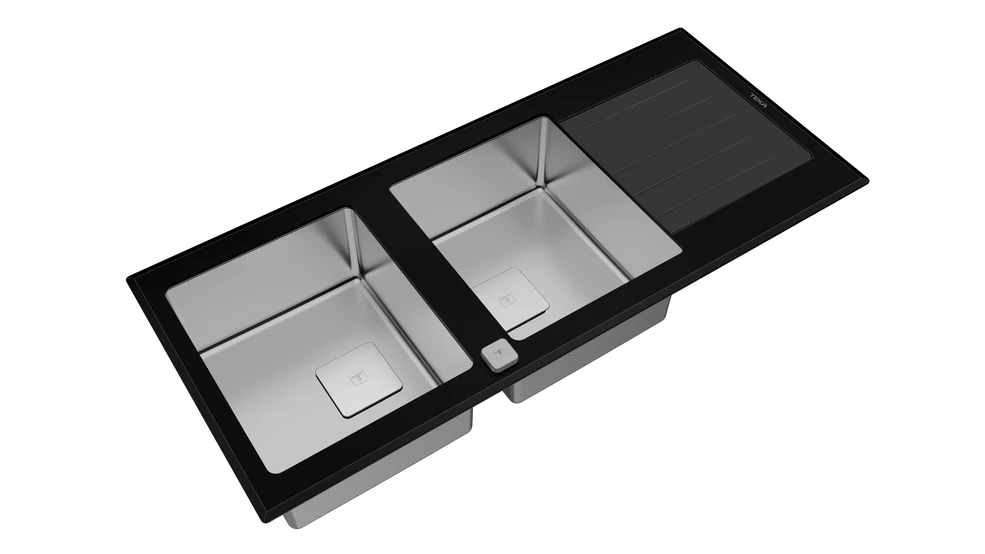 Teka Inset PureLine Glass sink with two bowls and one drainer 115160007