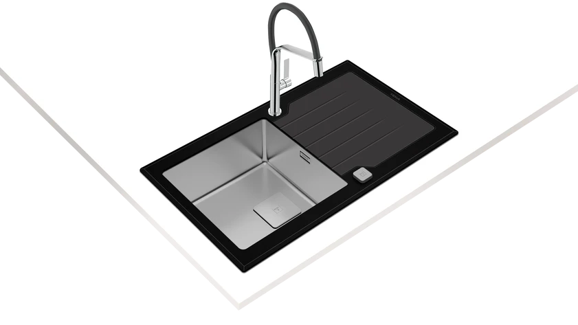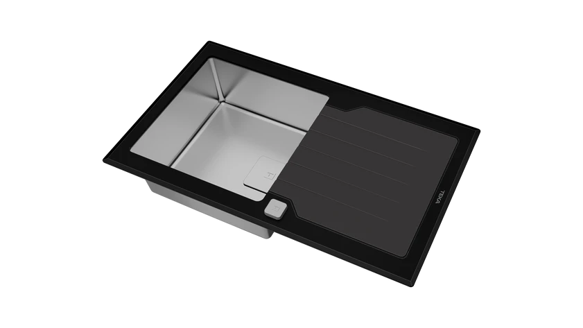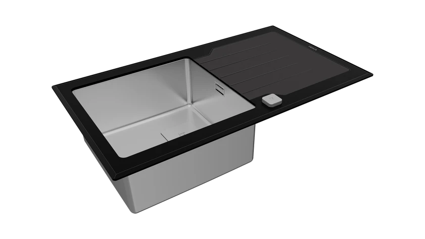 - PureLine glass sink, 1 inox bowl, and 1 drainer